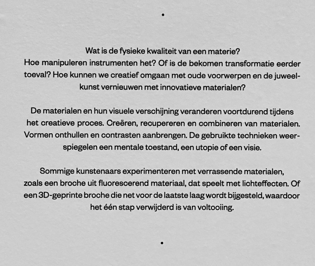 From April 29th to May 8th 2022, Brussels was all about contemporary jewellery! The European capital brought together established and emerging artists, collectors and an international public for the very first edition of the Brussels Jewellery Week. BJW aims to showcase contemporary jewellery as a creative and innovative craft. In addition to the main exhibition at MAD Brussels, you could also participate in a city tour, talks and workshops. _________________________ Exhibition ‘In Fieri’ at MAD Brussels___In the heart of the Dansaert district, more than 100 contemporary jewels was on view during the main exhibition In Fieri. ________________In Fieri, which means “in the making” refers to the transformation of materials but also of the artist. It is the stage where “being made” and “becoming” overlap in a significant way.