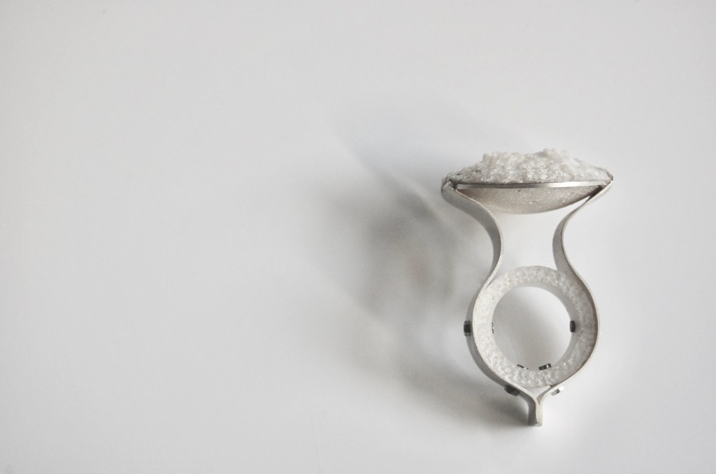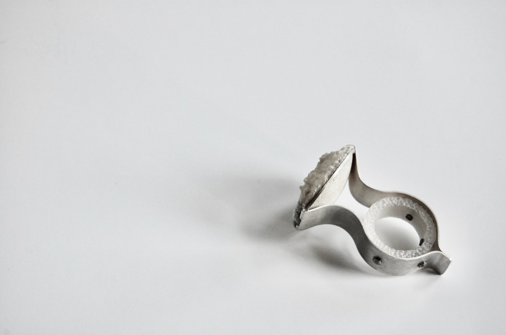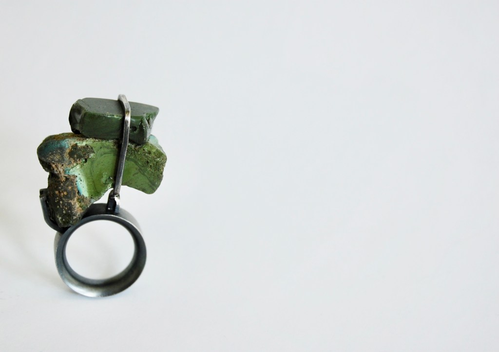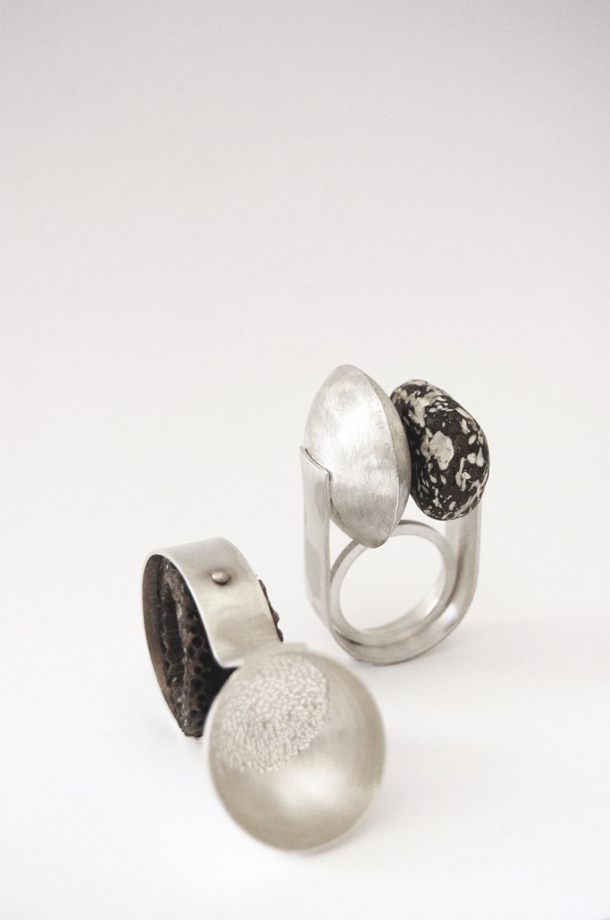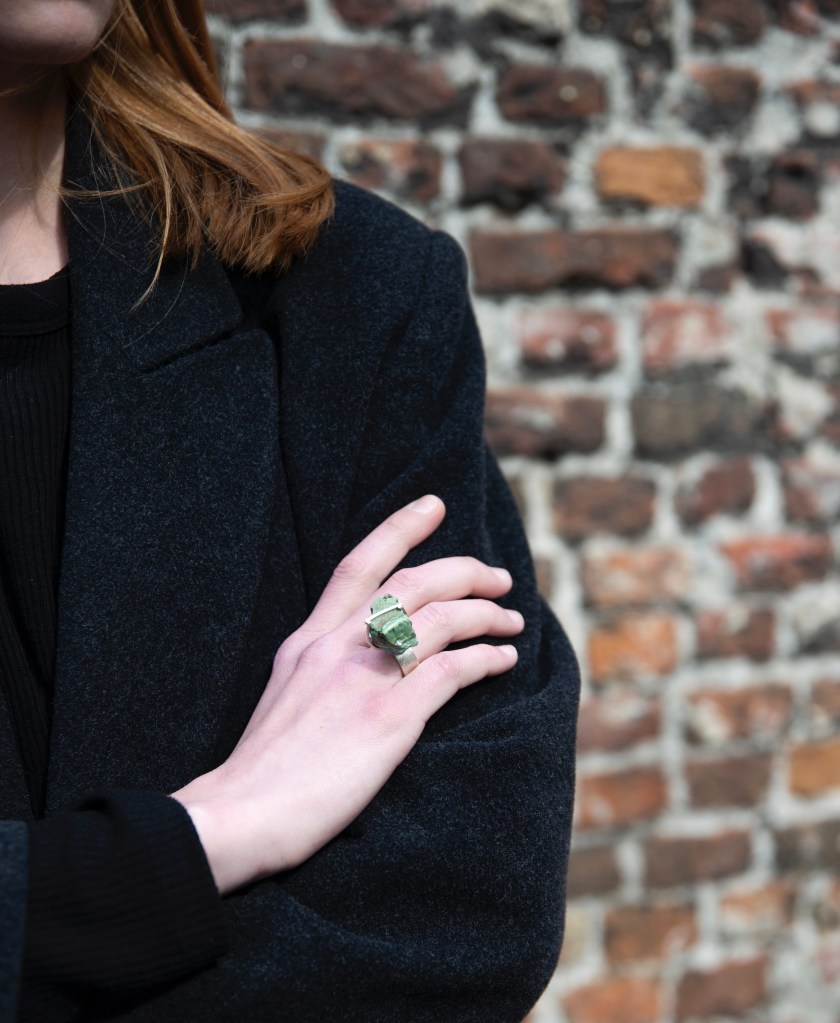 Work created with little treasures.___________________________________________________________ It all starts with little ‘treasures’. Found, received or created by myself. These little ‘treasures’ form the basis of the design. At this point, research questions need to be answered, does this ‘gem’ have specific details I want to highlight or hide? What specific characteristics should I take into account? How does it relate to the human body and therefore what is the best way to wear this little ‘treasure’ as jewellery? __________________________________________ Trained as, among other things, a traditional goldsmith, well known settings for gemstones are a source of inspiration. But I like to go beyond this tradition. Constructions and technical solutions are challenges I set myself. By researching constructions, shapes, structures and contrasts, I try to create an interesting field of tension. Usually, precious metal is the basis, but I also like to experiment with unconventional materials. ___________________________________________The Self Standing Naturals are all unique pieces because I like to take on the above-mentioned challenges each time again.