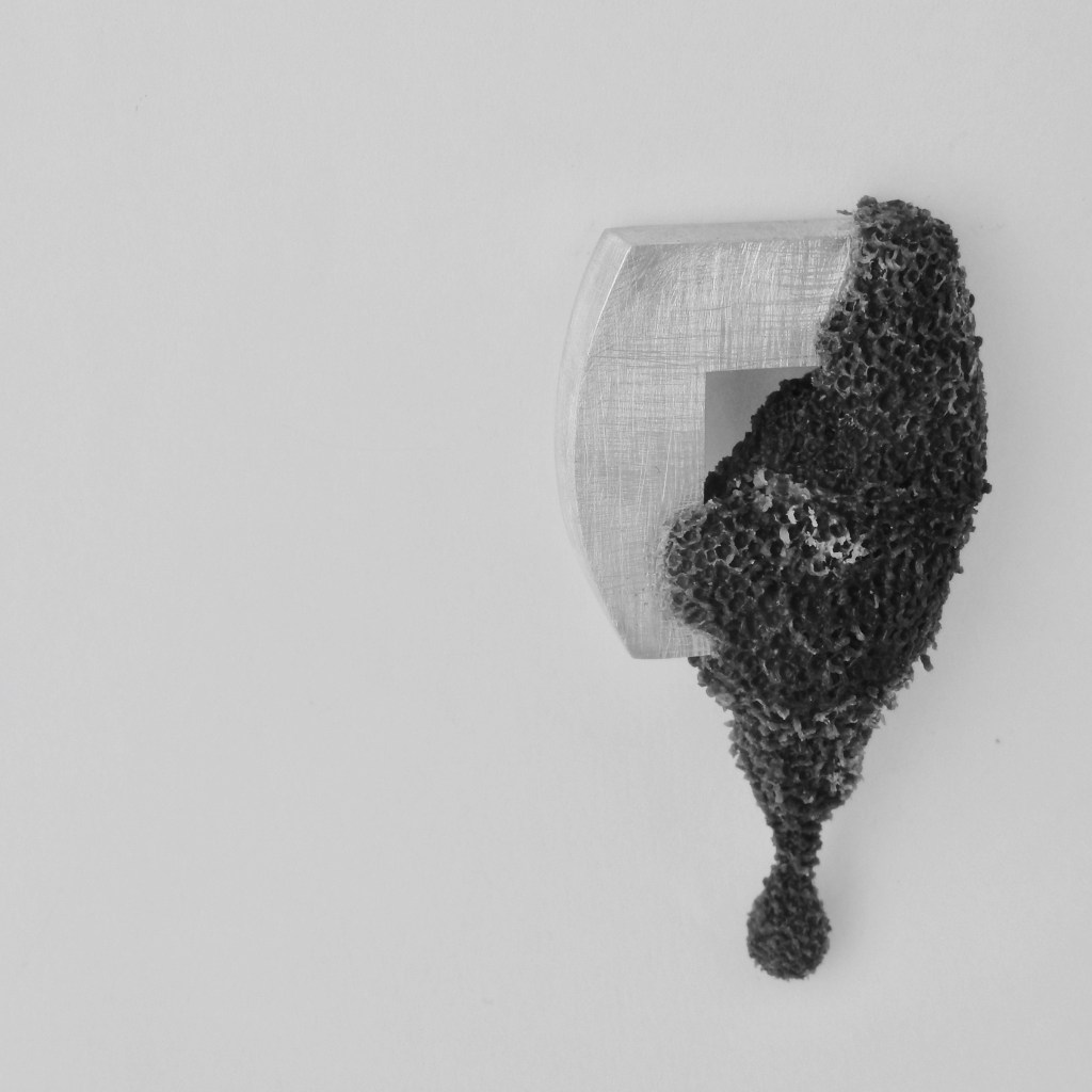 brooch – silver, tin, polymorph, stainless steel