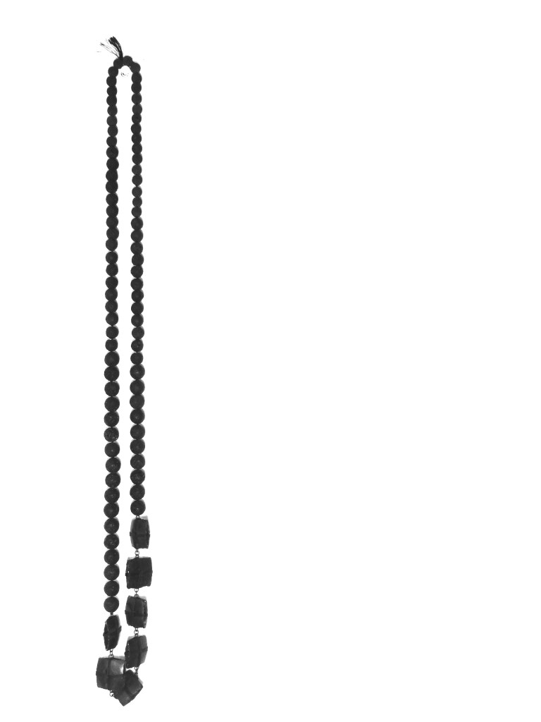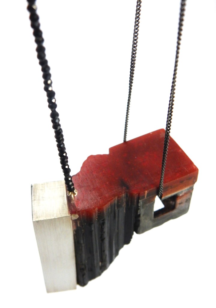 necklace – silver, zinc, tin, black spinel, black tourmaline, resin