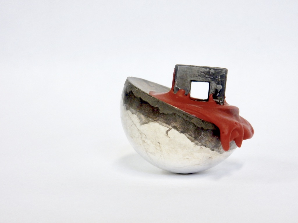brooch – silver, zinc, tin, sealing wax, stainless steel