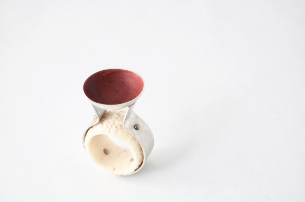ring – silver, horn, sealing wax, brass / ring – silver, bronze, sealing wax