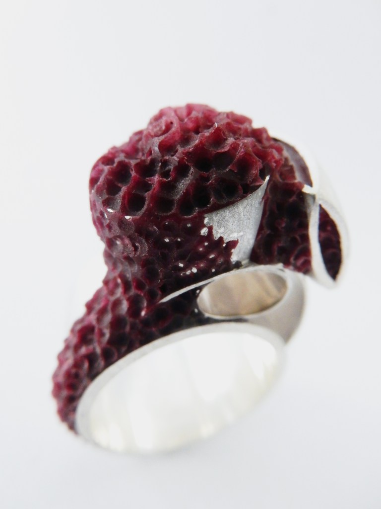 ring – silver, red resin